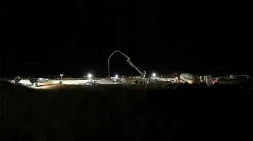 August 20 – crews worked overnight pouring the 36,000 square foot concrete slab for the first floor of the West Valley Primary & Specialty Care Center.